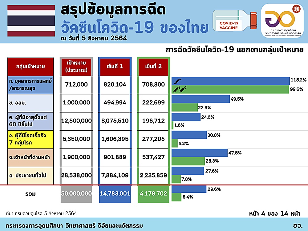 1. ข้อมูลการฉีดวัคซีนล่าสุดของประเทศไทย ณ วันที่ 5 สิงหาคม 2564